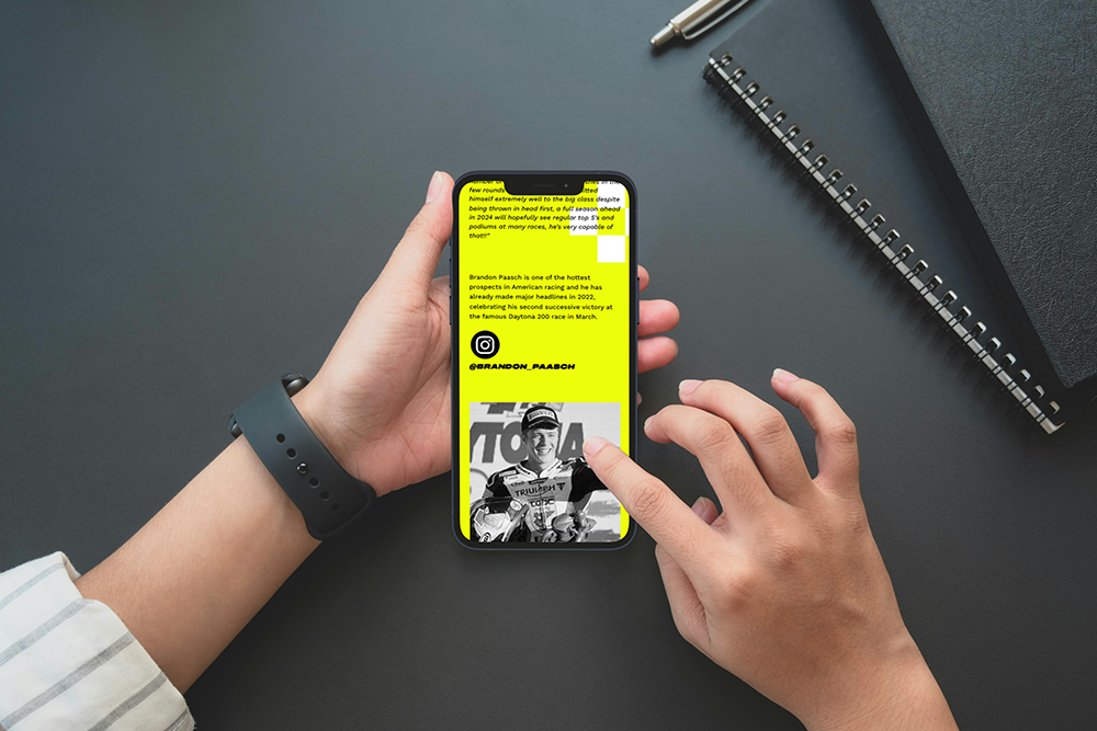In order to do this he wanted a brand, and a website, which stood out from the crowd. Not only did he want a website which looked good, it needed to be alive with current rider information - we couldn’t wait to take on this challenge…